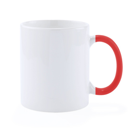 Keramiktasse mit 350 ml Fassungsvermögen in einer fröhlichen Farbkombination - komplett in Weiß mit Henkel in verschiedenen lebendigen Farben. Präsentiert in einer individuellen Box.