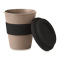 Einwandiger Becher aus 50% Bambus-Fasern und 50% PP. Silikon-Deckel und -Griff. Füllmenge: 350 ml. Da der einwandige Becher die Hitze nach außen leiten kann, kann der Artikel heiß werden.
