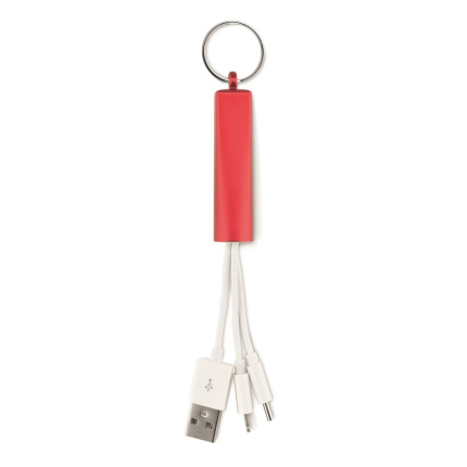 Schlüsselring mit Ladekabel USB-A, Mikro-B (2-in-1) und Typ-C. Wählen Sie eine Lasergravur und die LED-Beleuchtung beleuchtet Ihr Logo zusätzlich.