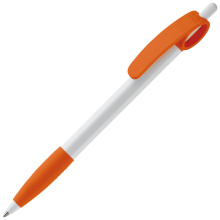 Kugelschreiber aus Kunststoff, mit blauschreibender Mine und einem Metallclip.