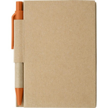 Umweltfreundlich! Mininotizbuch aus recyceltem Material mit ca. 80 Blatt cremefarbenem, liniertem Papier, Pappumschlag und gebundenem Rücken. Inkl. blauschreibendem Kugelschreiber.