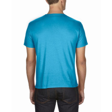 Nachhaltige Werbebekleidung. Rundhalsausschnitt. Seitennähte. Hinten länger als vorne. Schulter zu Schulter Nackenband. Doppelnaht an Kragen und Saum.